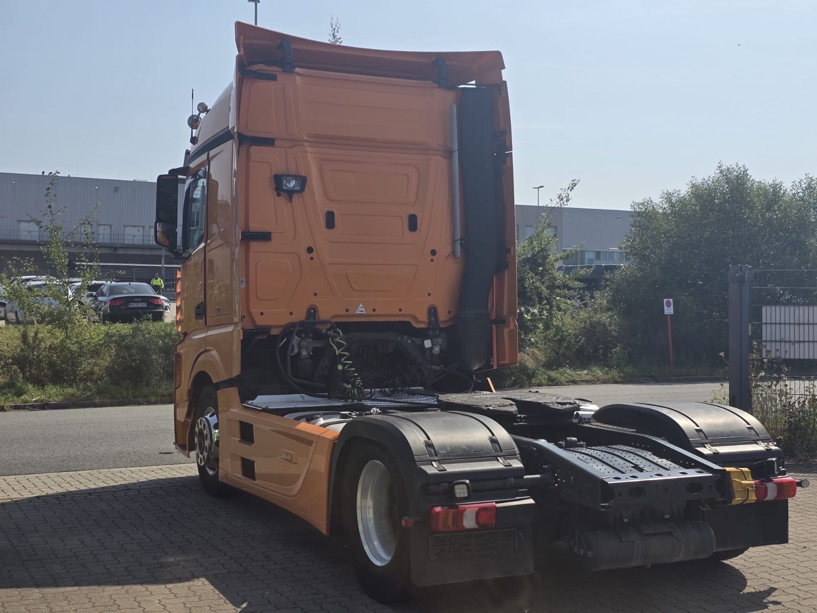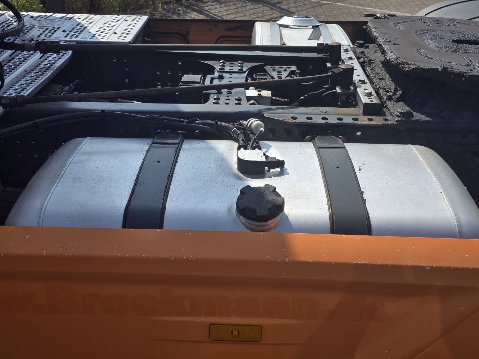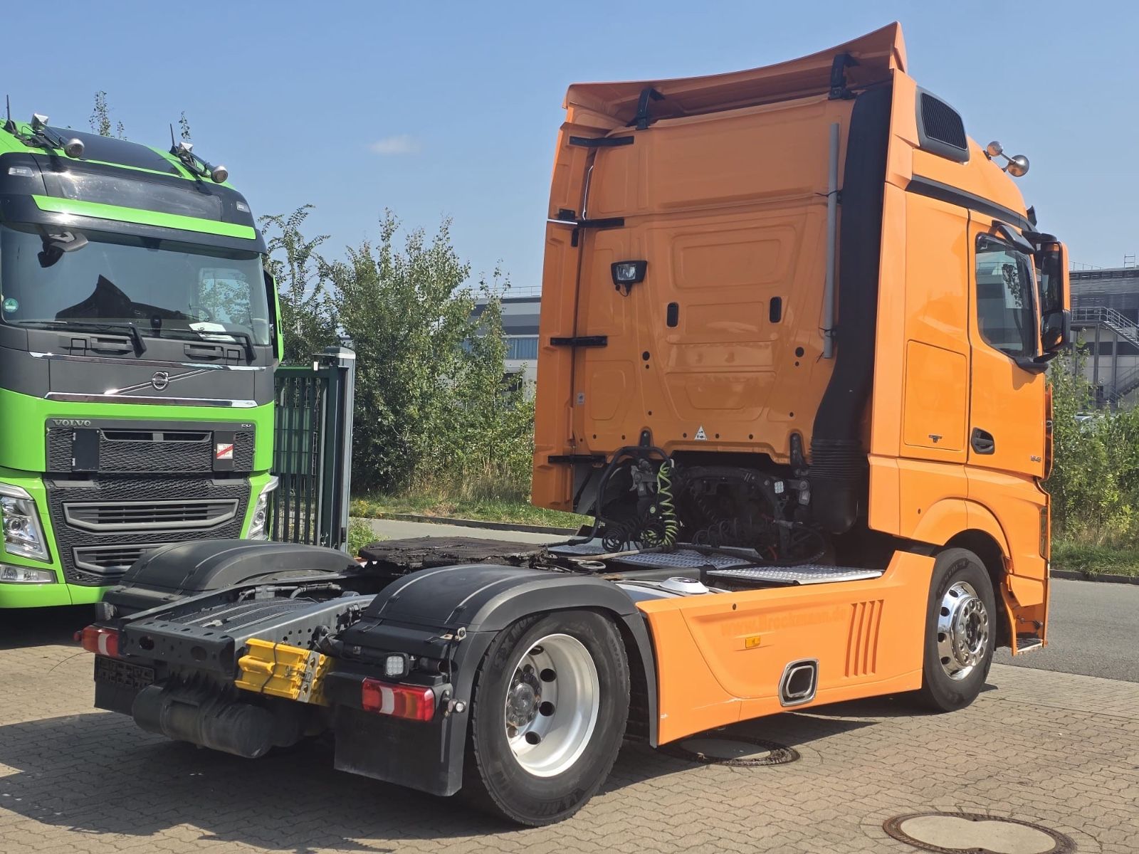 Mercedes-Benz Actros 1845 4×2 tractor unit, Euro 6, Stream Space driver’s cab with 1 sleeping area, frame spoiler, roof side spoilers, differential lock, ACC adaptive cruise control, lane-keeping assistant, collision warning, blind spot camera, auxiliary drive, slider floor hydraulic, air horns, tires 315/70 R 22.5, radio/CD, electric windows.