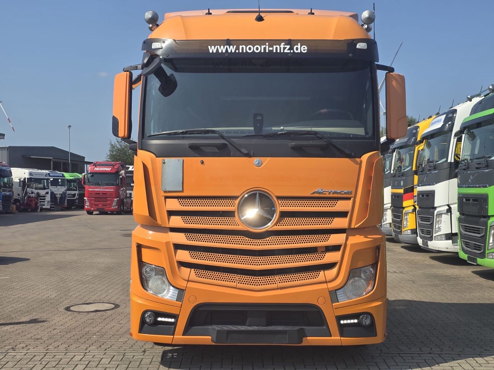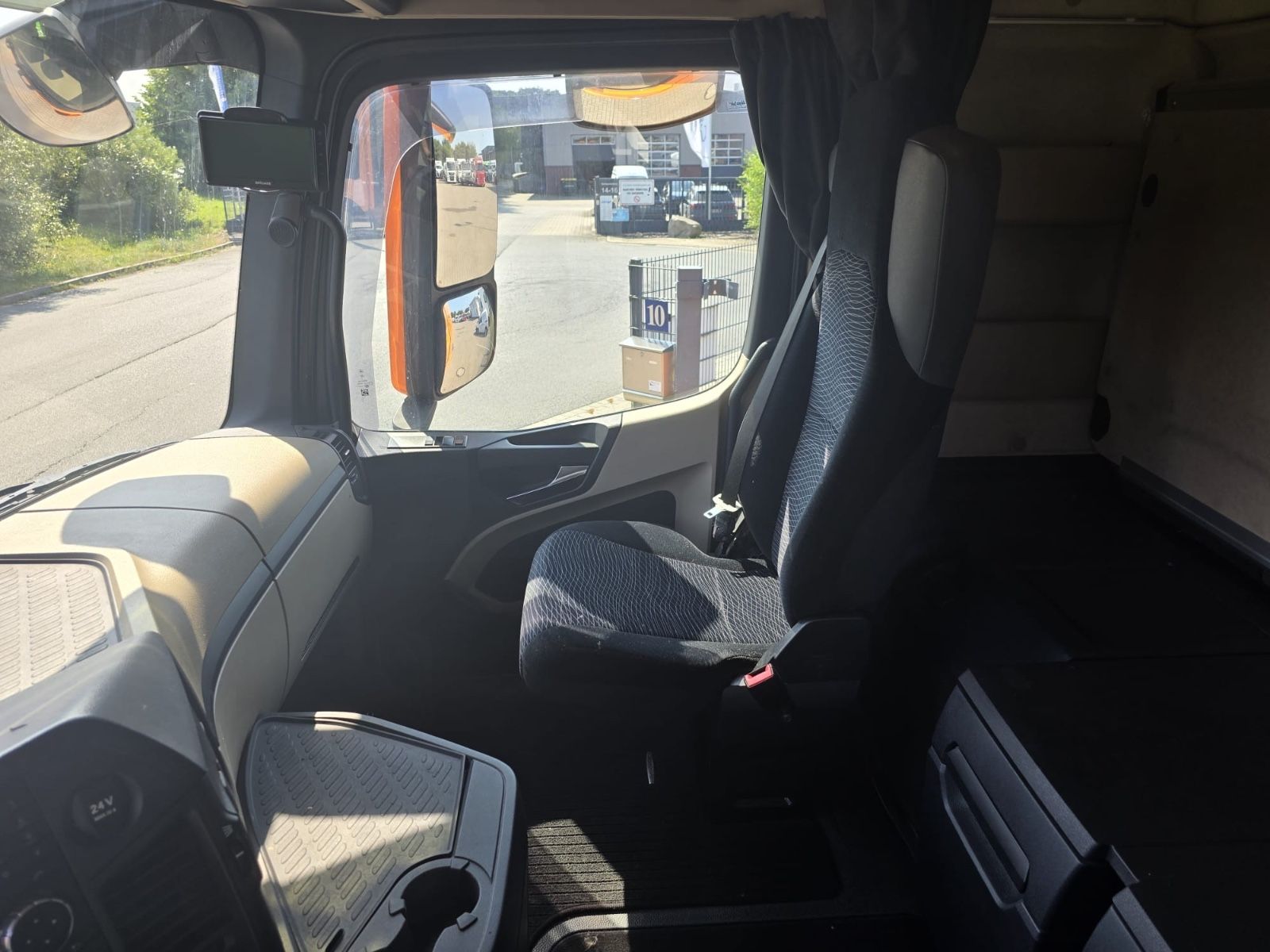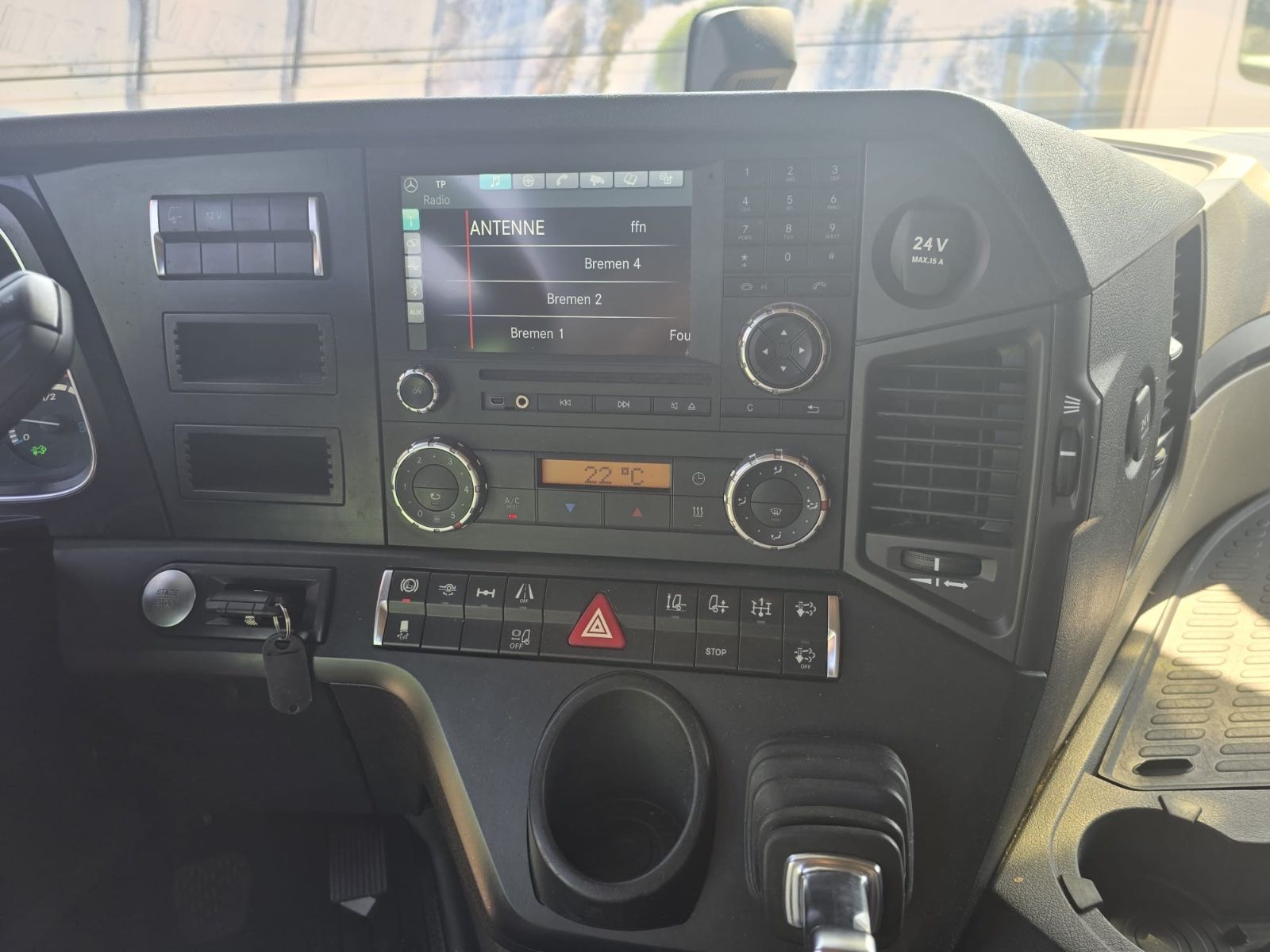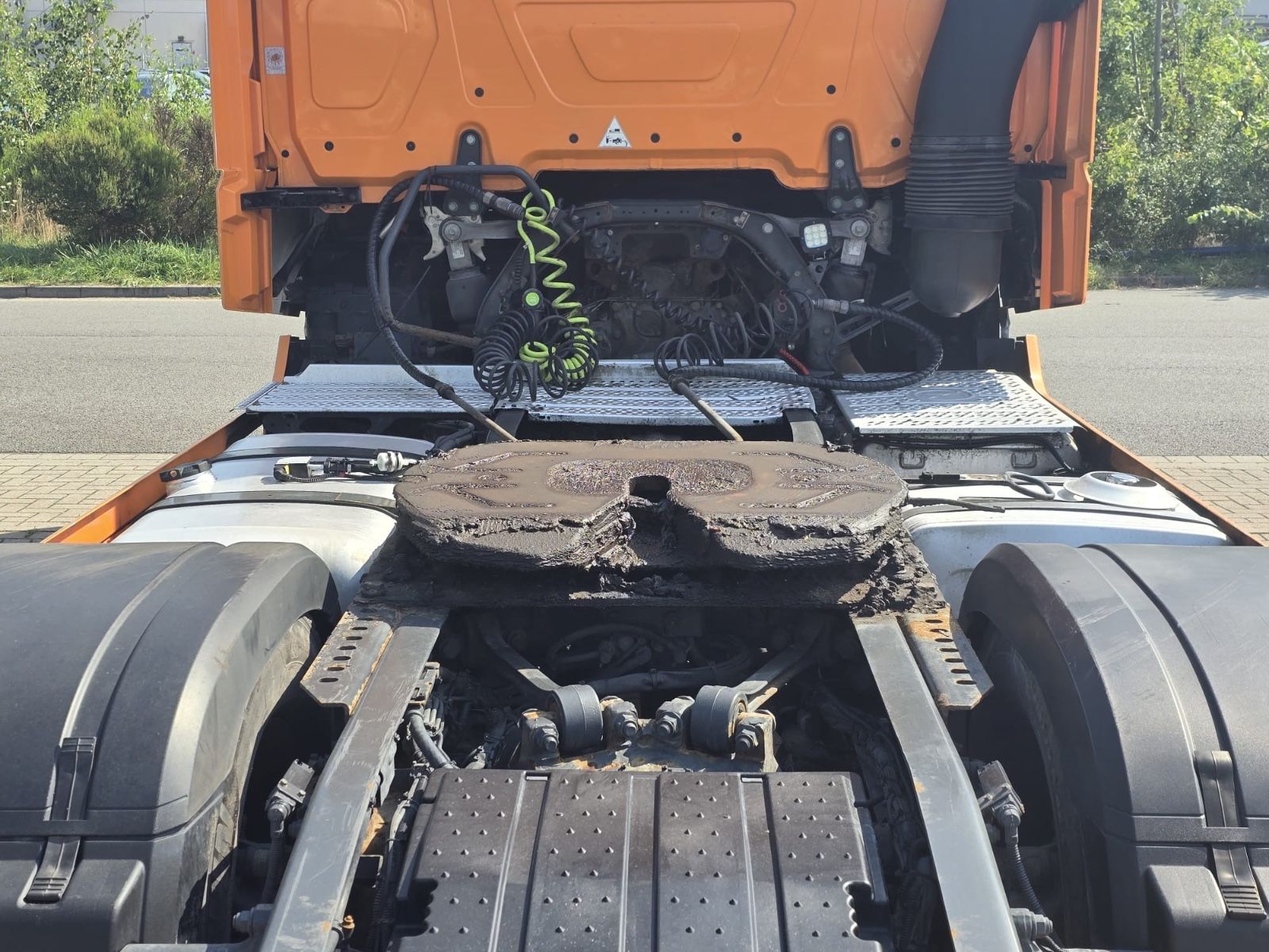 Mercedes-Benz Actros 1845 4×2 tractor unit, Euro 6, Stream Space driver’s cab with 1 sleeping area, frame spoiler, roof side spoilers, differential lock, ACC adaptive cruise control, lane-keeping assistant, collision warning, blind spot camera, auxiliary drive, slider floor hydraulic, air horns, tires 315/70 R 22.5, radio/CD, electric windows.