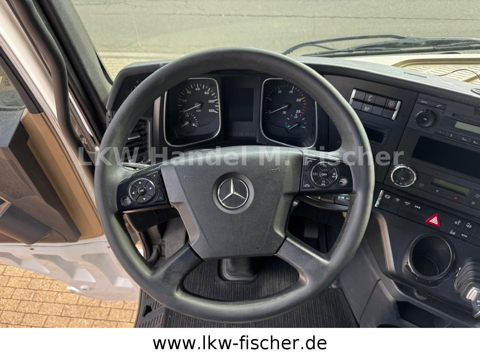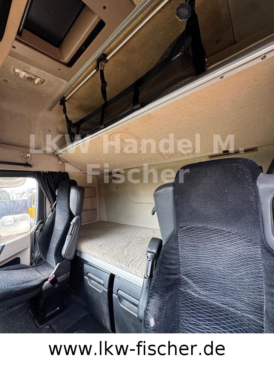 Additional features: EURO 6 emission standard, axle configuration: 6×2, Actros 4, trailer socket 24V / 15-pin, work lights, exhaust to the right outside, electrically adjustable and heated exterior mirrors, differential lock rear axle, steel air tank, medium air supply unit, cab: L BigSpace, cab: steel suspended, comfort, suspension: leaf/air, suspension: front leaf spring aluminum, electric windows, tinted front windshield, generator 100 A, body/build: tractor unit, lower comfort bed, comfort locking system, communication interface, three-part fenders, fuel tank: 570 L aluminum, shutter for cooler, regulated steering assist pump, 2-stage air compressor, engine 12.8 L – 330 kW R6 diesel (OM 471), engine brake, engine compartment encapsulation, ramp mirrors, spare wheel, waste heat recovery, disc brakes front and rear axle, seat covers/upholstery: fabric, cab seats: passenger functional seat, cab seats: driver’s seat backrest foldable, voltage converter 24V / 12V 10 A, front splash guard, front stabilizer, outer left storage flap, cab socket 24V, tachograph/EG control device, door extension for cab, aerodynamically shaped underbody paneling, front under-run protection, preparation for CB radio, preparation for toll collection, bent front axle, regulated water pump, permissible total weight 23.3 t, additional heating (water).