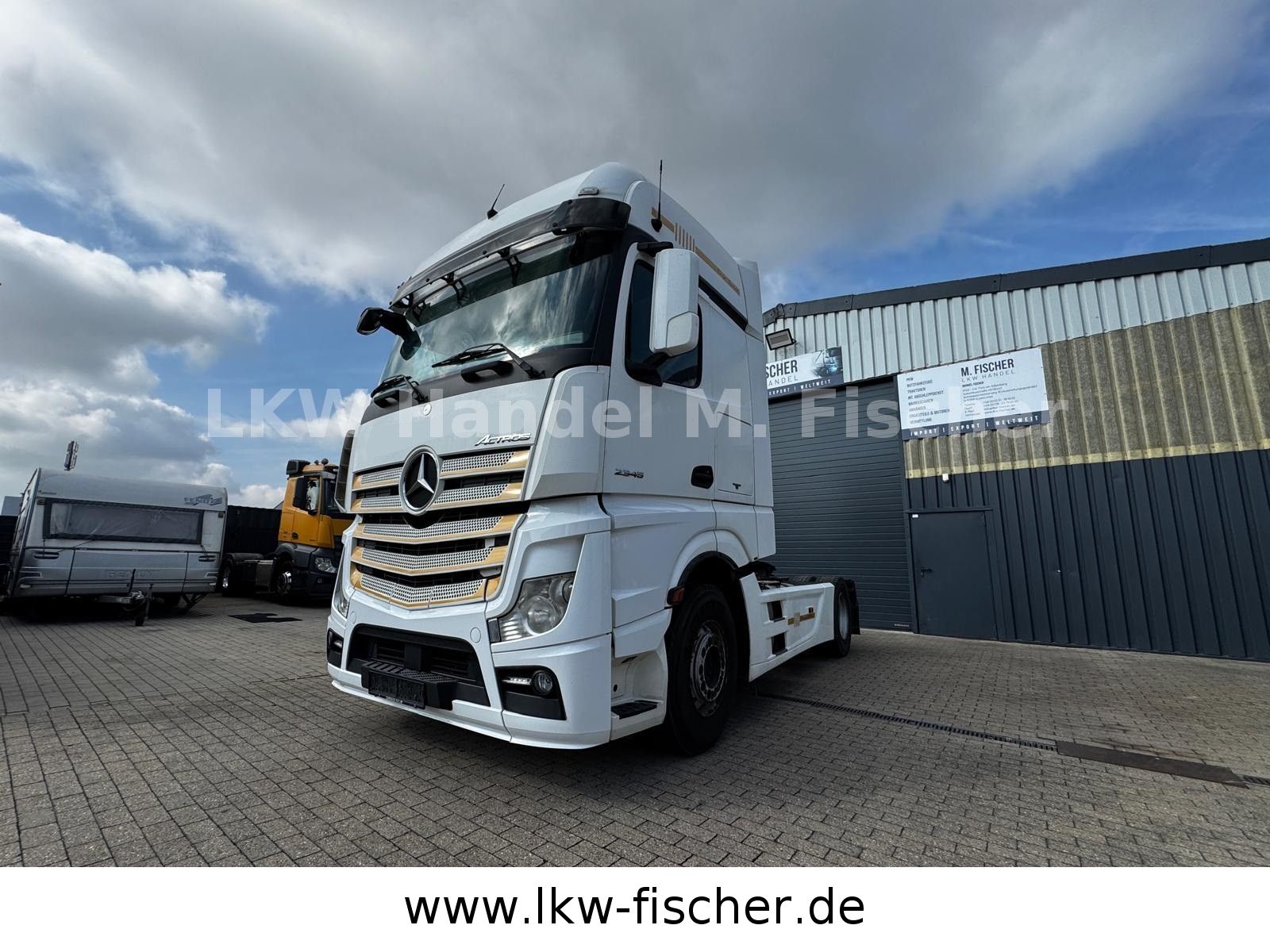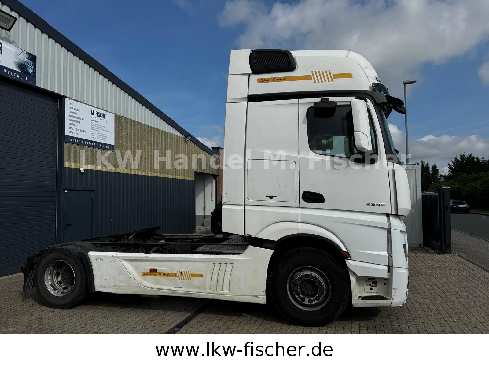 Mercedes Benz Actros MP 4 2345 Gigaspace, retarder, air conditioning, standard small leading axle, liftable Estepe, refrigerator, 2 beds, long wheelbase, 5-fold spoiler, alarm system, EU vehicle, first hand, accident-free, original paint.