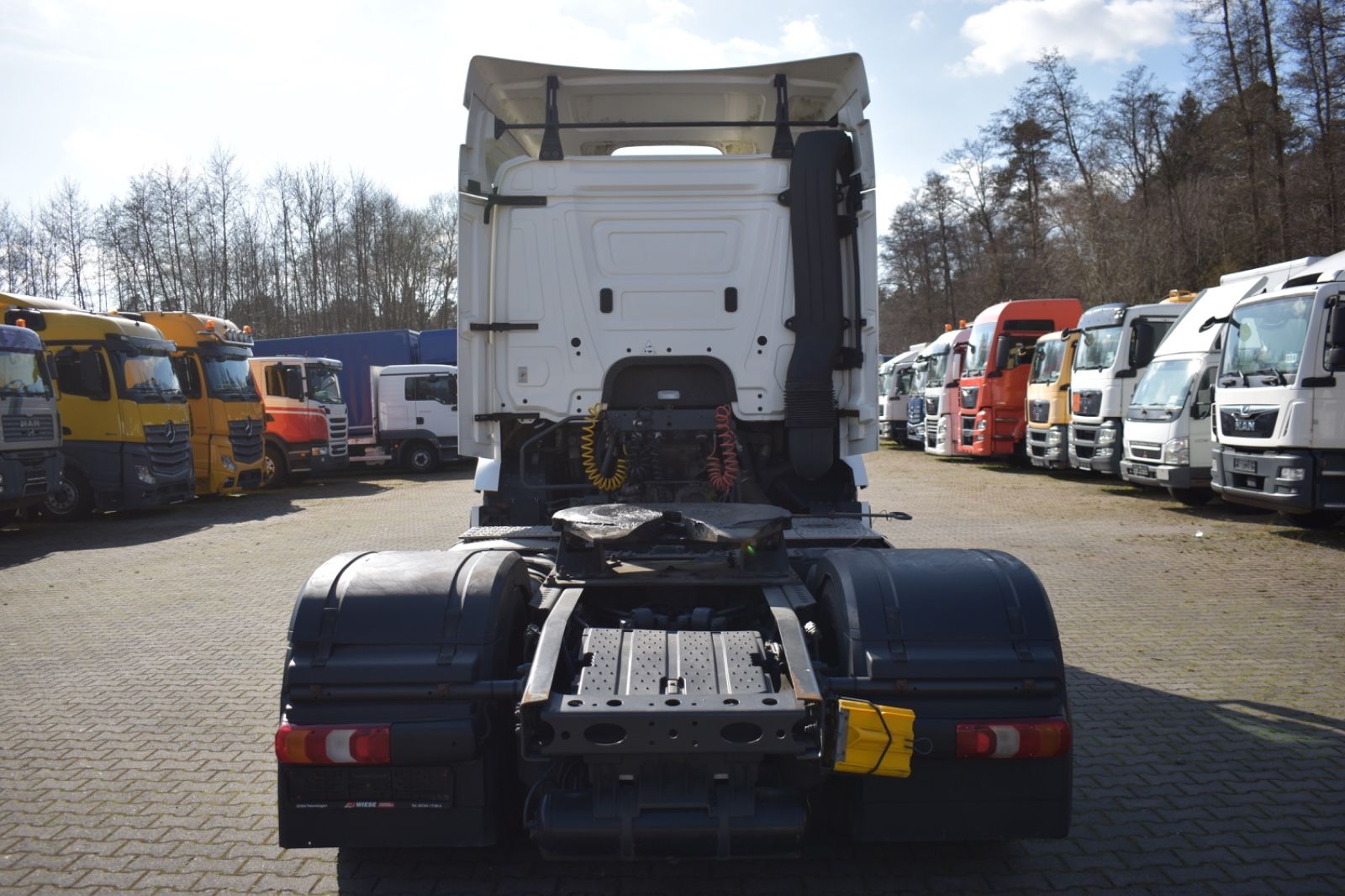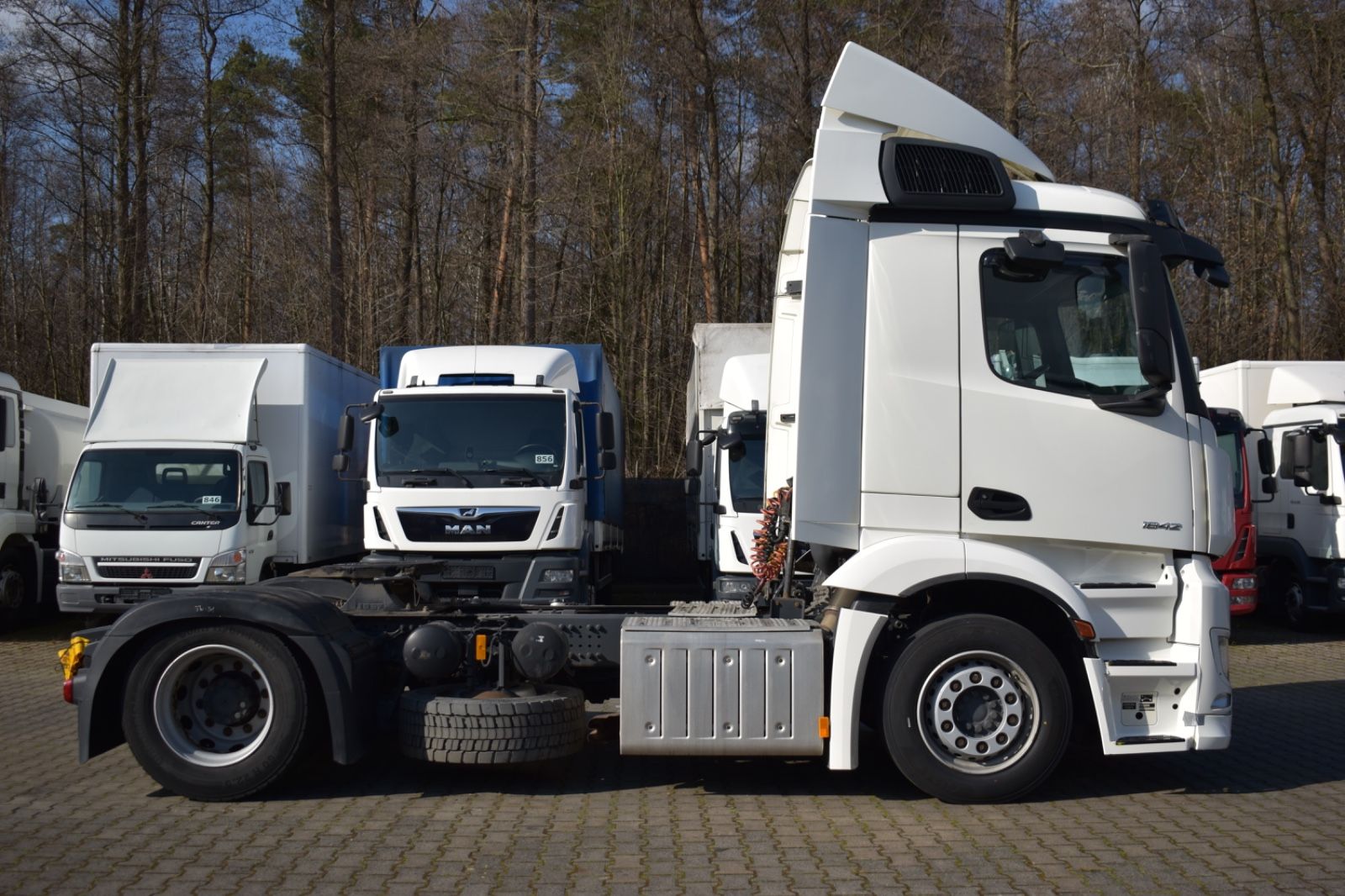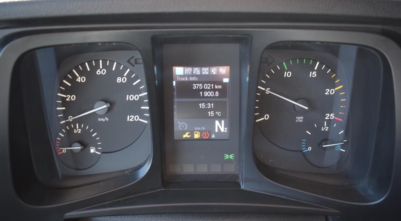 Mercedes-Benz Antos 1842 LL/ClassicSpace, 2xTank, climate control, ACC, Euro 6. Cabin: ClassicSpace, 2x tank, full covering, lane departure assistant, air conditioning, suspension: air, cruise control, electric heated outside mirrors, autonomous emergency braking assistant (Active Brake-Assist 5), rear axle differential lock, auxiliary heater, multifunction steering wheel, tire pressure monitoring system, upholstery: driver’s seat velvet, comfort locking system, electric windows, electric sunshade for windshield and sleeper cab. Special features: driver’s side airbag, work lights, audio system: CD radio (Bluetooth), air connection in the cabin, air horn, brake assistant (Active Brake-Assist 3), automatic climate control, combined tank aluminum – 660 ltr. diesel + 75 ltr. urea solution (AdBlue), air intake behind cabin, roof air deflector (lockable) and side, mounting plate for fifth wheel coupling, intensified engine brake, tire pressure monitoring system, side spare wheel lift, lower sleeping berth, circuit breaker, cabin seats: passenger seat with armrest, driver’s seat comfort, driver’s seat backrest foldable, external sun visor, side window sunshade, driver’s door, 24V socket in passenger footwell additionally, additional thermal insulation, additional heating (water). Further specifications: emission standard EURO 6, axle configuration: 4×2, front axle load 8.0 t, 24V / 15-pin trailer socket, Antos, exhaust to the right outside, electric heated mirrors, battery 170 Ah, rear axle differential lock, steel air tank, medium air unit, cabin width 2.30 m, hydraulic tilting mechanism, M ClassicSpace cabin, steel-spring cabin, standard, reinforced (Sweden), cabin floor with engine tunnel 170 mm, suspension: air, electric windows, tinted windscreen, generator 100 A, 12-speed transmission: type G 211-12, 12-speed transmission: type G 281-12, manual lifting roof (steel), rear axle crown wheel 440, info-display 10.4 cm, integral rear, body/type: tractor unit, comfort locking system, 3-part fender, fuel tank: 390 ltr. aluminum, unregulated steering aid pump, engine 12.8 ltr. – 310 kW R6 diesel (OM 471), engine compartment encapsulation, wheelbase 3700 mm, ramp mirrors, spare wheel, residual heat utilization, manually lubricated fifth wheel coupling, disc brakes on front and rear axles, seat cover/upholstery: fabric, cabin seats: passenger functional seat, front splash guard, cabin 24V socket, tachograph/EC control device, aerodynamically shaped underbody covering, front underrun protection, preparation for toll collection, offset front axle, regulated water pump, permissible total weight 18,00 t. General condition: mechanically, engine, transmission flawless. German vehicle, German documents. Top condition. Inspection book available. Mileage: 374,000. TÜV: 01/2026. Dimensions: height: 3694 mm, length: 6157 mm, width: 2550 mm, wheelbase: 3700 mm. Weight: permissible total weight: 18,000 kg, empty weight: 7,871 kg, payload: 10,129 kg. Tires: front axle: 355/50 R22.5 154/G (90%), rear axle: 315/60 R22.5 145/G (90%).
