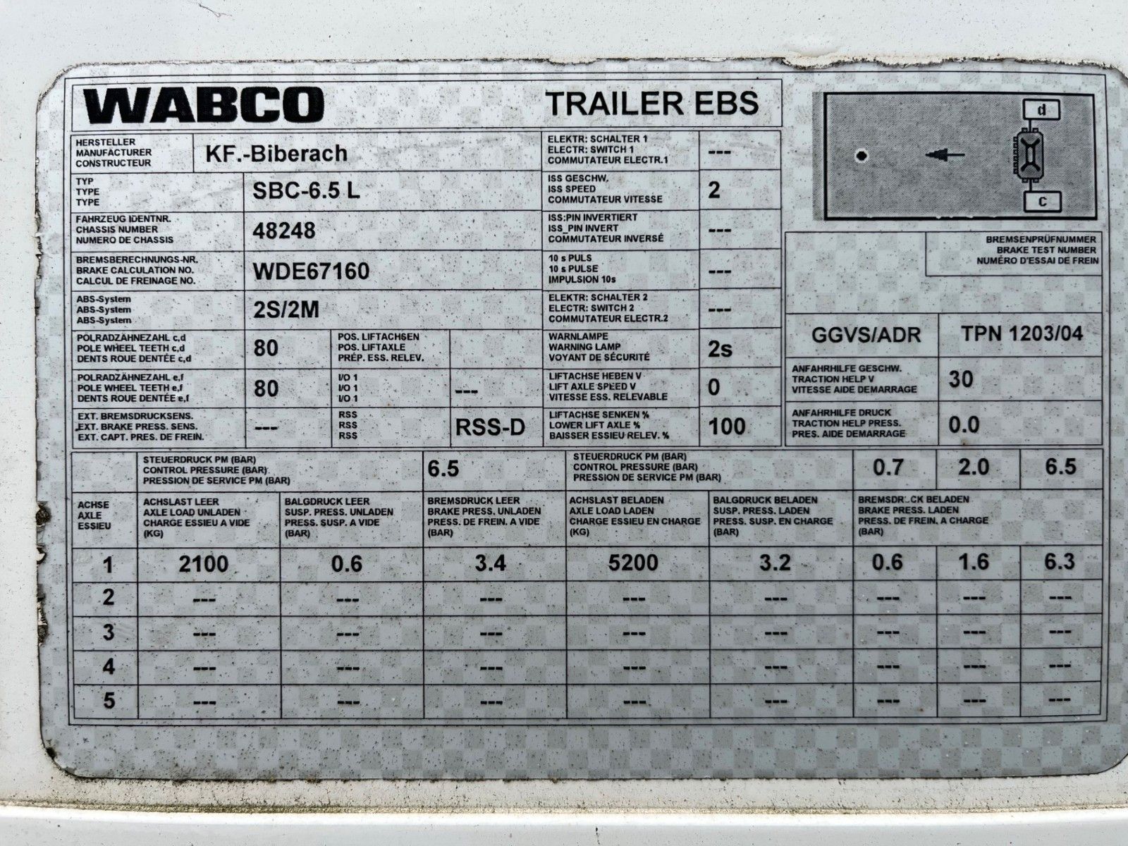 Semi-trailer with sliding tarpaulin from 09/2010 with Dautel LBW 1000 kg from the body manufacturer Biberach SBC-6.5L, dimensions LxWxH: 6750x2450x2650 cm, payload: 3520 kg, air suspension, tires 50-60%.